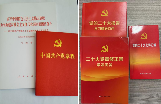 营造学习氛围随时学。学院党委为全体师生党员购买党的二十大会议报告原文、党章等学习书籍,为师生党支部同步购买二十大精神学习辅导书籍,号召党员个人积极自学,各支部把握组织生活等契机开展专题学习,真正做到了学院师生党员人手一册,鼓励全院师生时时学、处处学。设计制作了《党的二十大报告思维导图》宣传海报,营造浓厚的二十大精神学习氛围。
