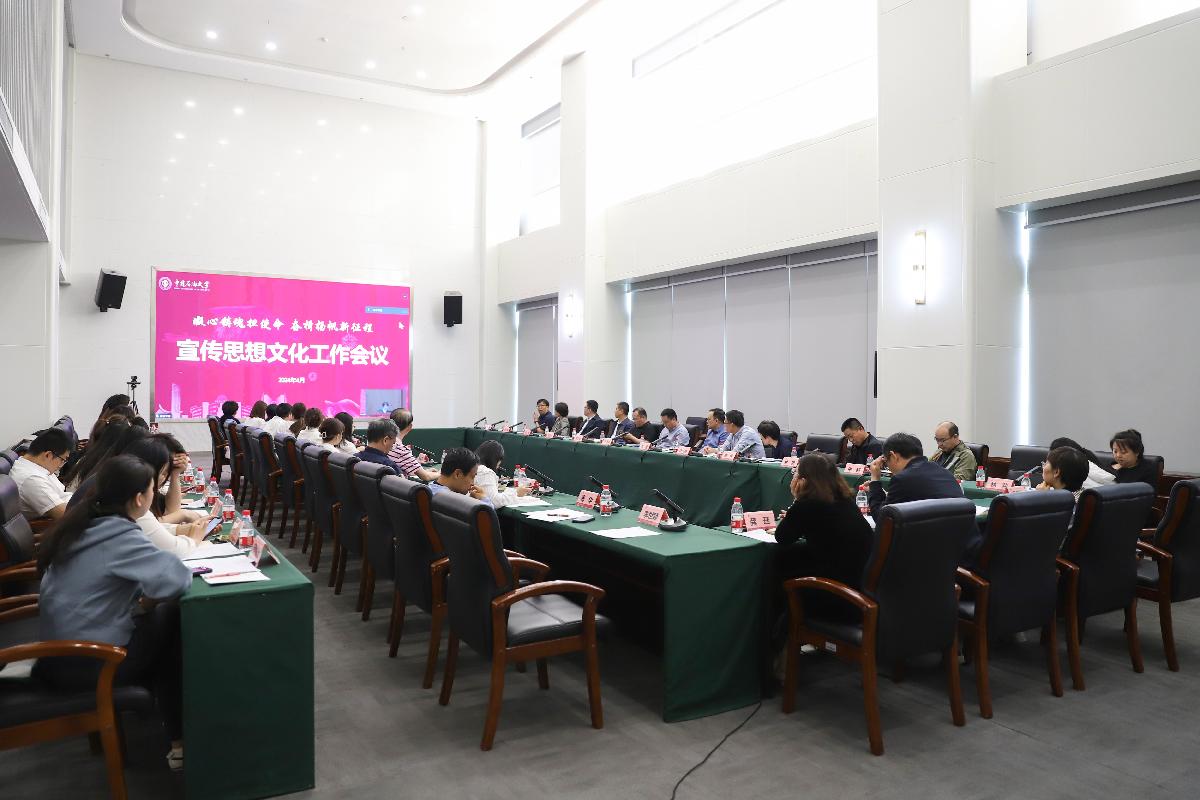 文永红在主持中指出,习近平文化思想的提出,既给我们做好宣传思想文化工作提供了行动指南,也为做好宣传思想文化工作带来了战略机遇。宣传思想文化工作方向已明、任务已定,关键是抓好会议精神的落实。要以高度的政治自觉抓落实、强烈的行动自觉抓落实、凝聚工作合力抓落实,在回顾总结中汲取经验,在回应时代要求中守正创新,在建设能源领域特色鲜明的世界一流研究型大学、在以教育强国建设支撑引领中国式现代化的新征程上,交出不负时代的育人答卷。