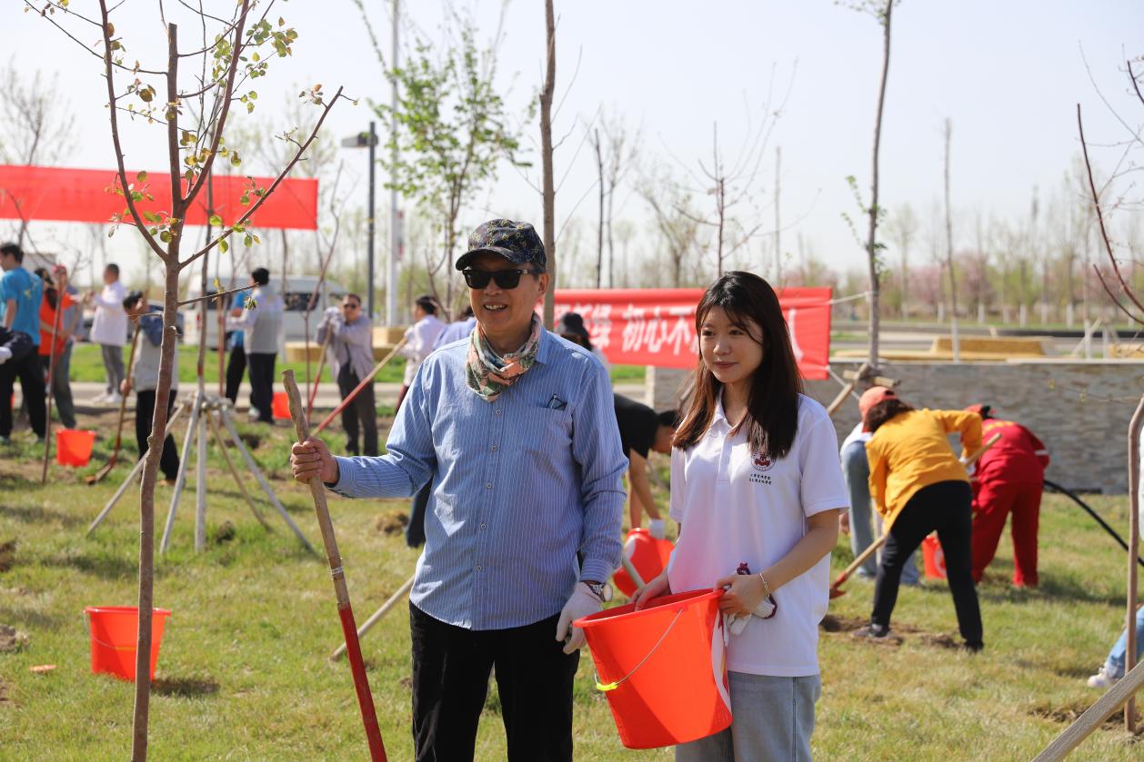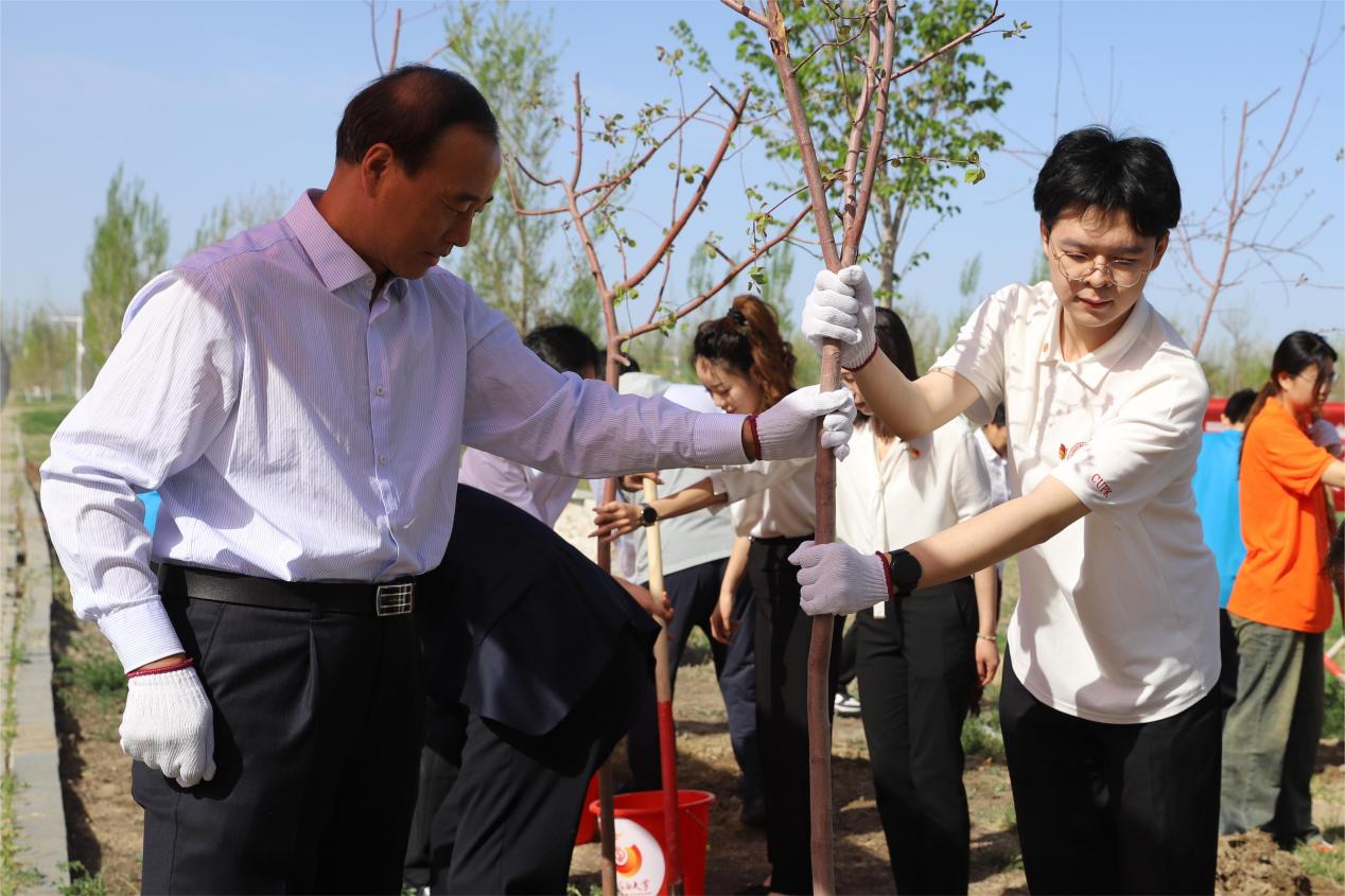 植树护绿功在当代,立德树人利在千秋。师生们或两两结对、或三五成组,有的挥锹铲土、有的扶苗填坑,从扶苗埋土、培土围堰,到提水浇灌,每道程序都有条不紊,一派热火朝天的忙碌景象。