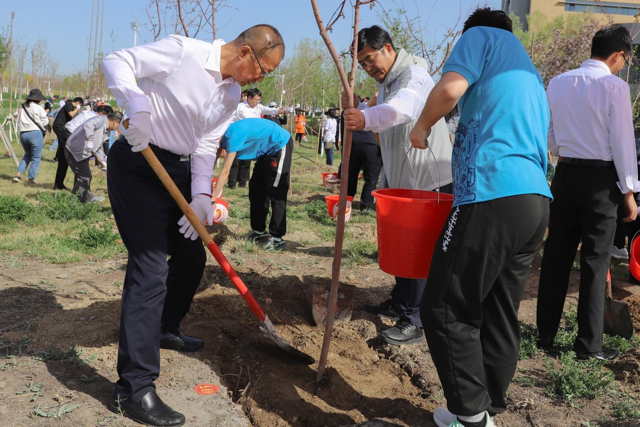 自治区党委教育工委、自治区教育厅一级巡视员胡军海,克拉玛依市委副书记、教育工委书记王冰,学校党委书记王同奇、党委副书记蒲俊霖,克拉玛依校区校长李军,自治区、克拉玛依市和学校相关职能部门负责人,校区领导班子和职能部门、学院负责人,援建教师代表,在校师生代表共210余人参加活动。活动共种植观赏海棠、小叶白蜡、丁香等260株树苗。