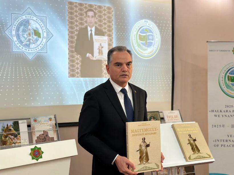 土库曼斯坦驻华大使帕拉哈特·杜尔德耶夫在致辞中强调,2024年是土库曼斯坦诗人、思想家马赫图姆库里诞辰300周年,国际社会与土库曼斯坦为此举办了系列纪念活动。谢尔达尔·别尔德穆哈梅多夫总统的新书《马赫图姆库里——世界的思想家》不仅是对马赫图姆库里哲学理念与诗歌艺术的系统梳理,也是对联合国“2025国际和平与信任年”倡议的积极响应。马赫图姆库里的和平与友谊精神与土库曼斯坦中立30周年的外交理念相契合,留学生应成为两国文化交流的桥梁,让思想之光照亮合作之路。