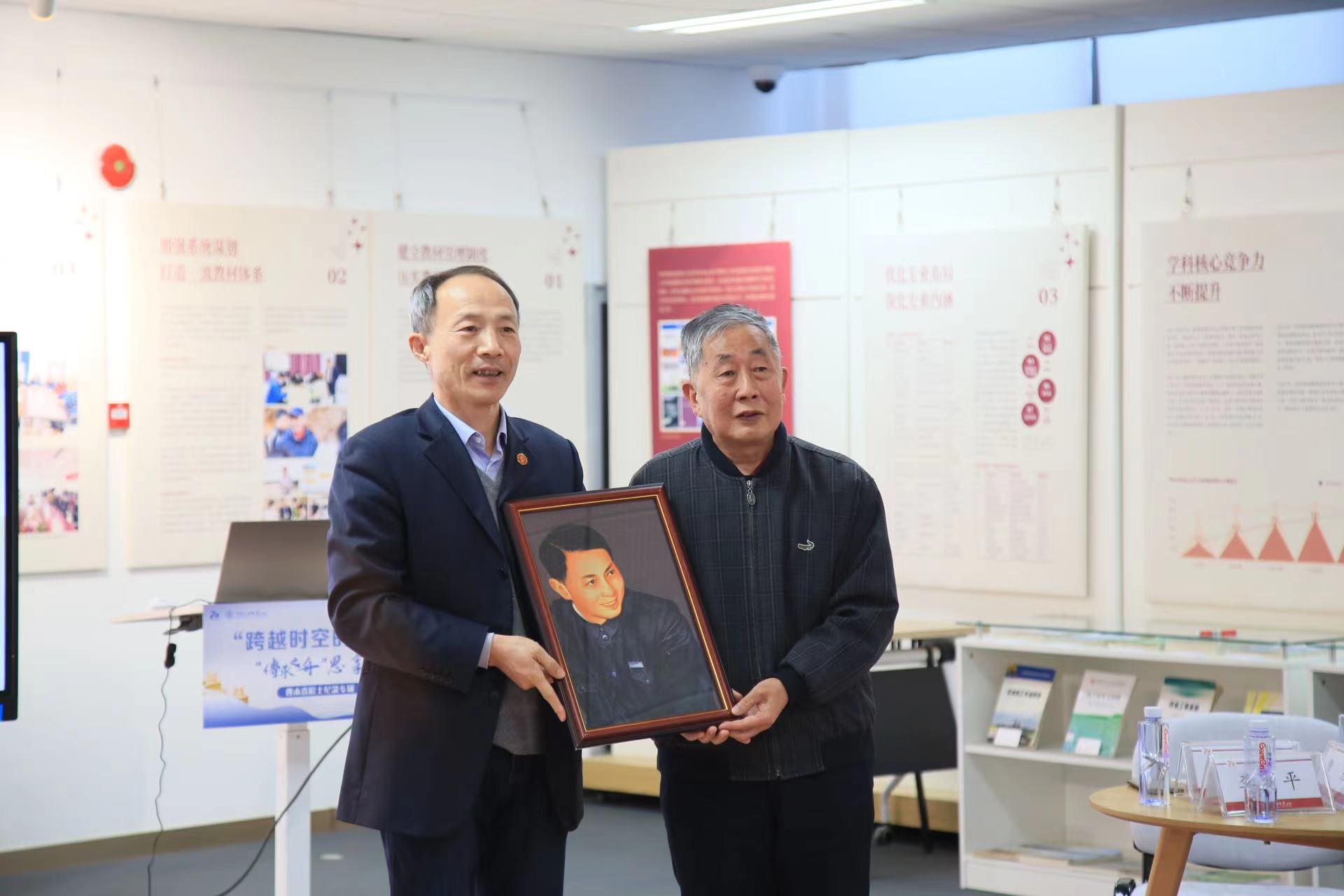 鲍志东向曹珏赠送曹本熹院士画像。他表示,回顾曹本熹院士的一生,他心怀中国石油工业发展,为北京石油学院的筹建和创立、为中国高等教育事业开启新篇章作出贡献 ;他一生致力于科学研究和教育事业,为我国的石油科技和石油教育作贡献,为国家培养了一大批栋梁之才;他无私奉献、立志为国的誓言,鞠躬尽粹、丹心报国的精神,照耀着师生的前行之路。他希望青年教师能以曹本熹院士为榜样,在教学工作中严谨治学,注重学生发展;他鼓励青年学生传承曹本熹院士丹心报国的精神,存高远,勤奋学习,为把“能源饭碗”牢牢端在自己手中贡献智慧和力量。