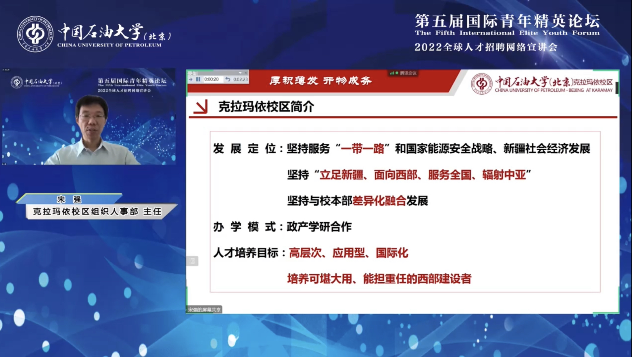 中石大举办第五届国际青年精英论坛暨2022全球人才招聘网络宣讲会