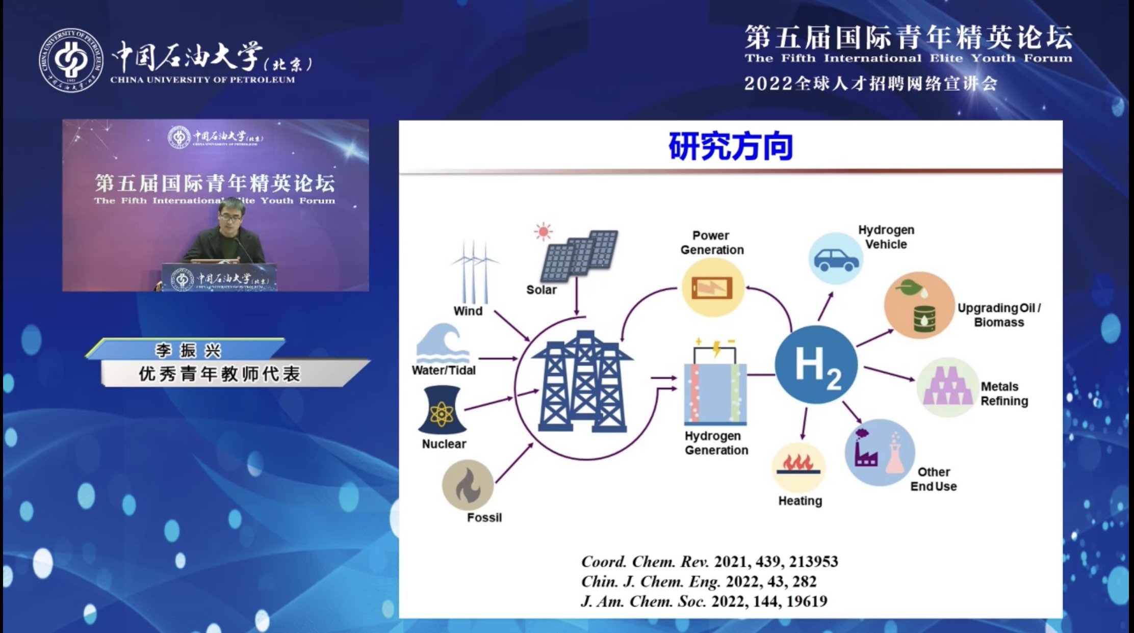 陈峰代表学校对参加此次论坛的海内外青年学者表示欢迎并致以新年问候。他指出,中国石油大学(北京)自诞生以来始终与国家发展、行业进步同向同行。近年来,学校顺应能源转型大势和国家战略需求,以“双一流”建设为引领,在学科建设、科技攻关等方面不断跃升新台阶,在诸多领域取得优异成绩。他重点介绍了学校全方位的教师引育体系及青年人才引育成果,表示面向第二个百年奋斗目标和学校高质量发展的重大战略机遇期,学校比历史上任何时期都更加渴望人才,希望青年人才加入中石大,为实现建成能源领域特色鲜明的世界一流研究型大学的宏伟目标并肩奋斗。
