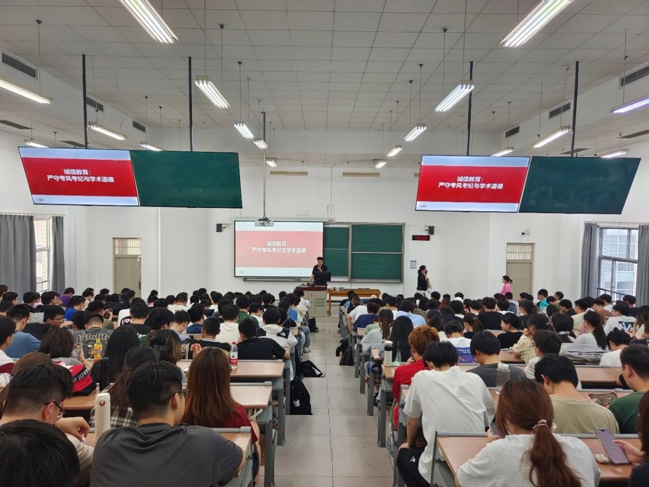 学生工作队伍坚持下沉一线,深入宿舍狠抓舍风建设,深入课堂针对学生课堂不文明现象开展专项督导,严格大一学生早操、晚自习管理,促进学生养成良好的学习生活习惯。建立“考前教育—过程监督”管理机制,各学院通过案例警示教育、召开诚信教育主题班会、签署《诚信考试承诺书》等形式,加强考风考纪宣传、开展诚信应考教育,引导学生诚信应考、遵守科学道德。机械与储运工程学院开展“诚信应考宣传月”活动,创新推出“诚信考试积分制”,将诚信表现纳入学生综合素质评价。