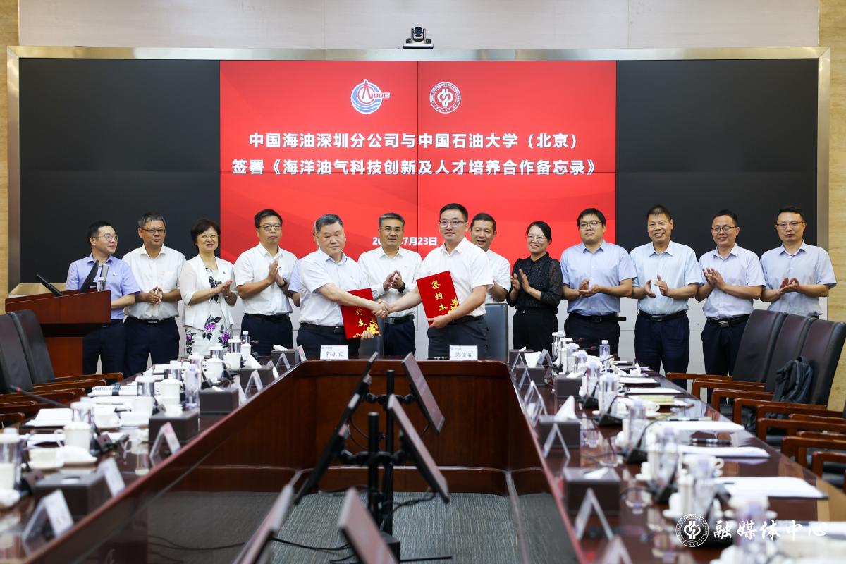 座谈会后,校党委副书记蒲俊霖与中海油深圳分公司副总经理郭永宾签署了合作备忘录,科学技术处处长王敬与公司采办中心首席采购师魏玉森签署了科研项目合同。