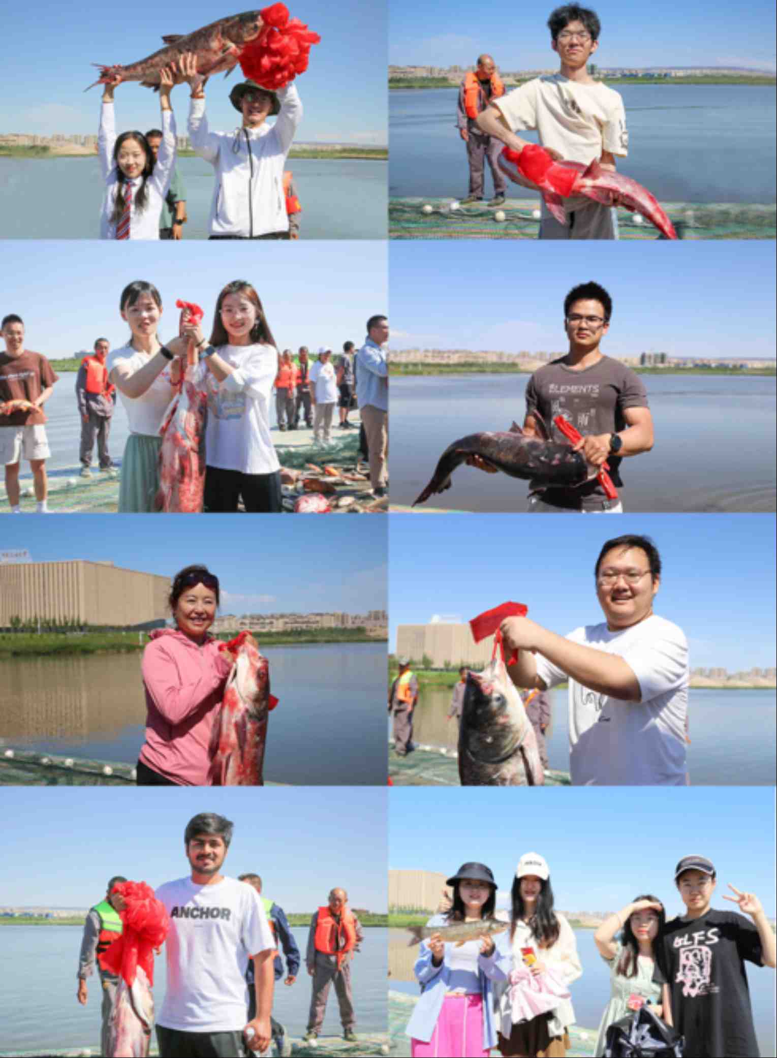 “一、二、三,收网喽!”伴随着响亮的口号,碧波荡漾的红山湖上一片欢腾。本次捕捞收获颇丰,共计捕获1000多公斤鱼,将用于制作全鱼宴以及椒麻鱼、清蒸鱼、酸菜鱼、红烧鱼等4种单人套餐供全校师生免费品尝。