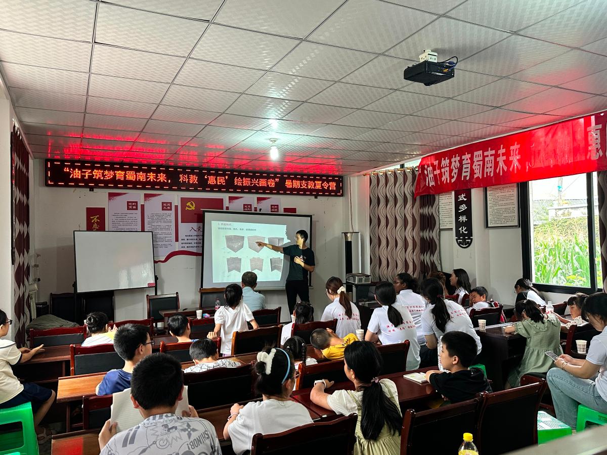 为深入学习宣传贯彻党的二十大精神,以习近平总书记重要回信精神为指引,聚焦深入贯彻党的二十大关于全面推进乡村振兴的战略部署,中国石油大学(北京)地球科学学院联合党政办公室、校友办公室组建“油子筑梦育蜀南未来,科教‘惠民’绘振兴画卷”实践团,于7月6日至16日前往四川省宜宾市珙县底洞镇开展“三下乡”社会实践活动,实践团包含2名地质学专家教授、3名思政教师、1名埃塞俄比亚留学生及学生骨干。实践团以支教为主线,依托地质学专业特色和平台,开展教育帮扶、经济帮扶、产业帮扶、科技帮扶、人才帮扶,通过“学校+中小学+企业+政府”的四方联动,共同促进惠民村当地的教育和经济发展,推进乡村教育事业发展,推动绿色转型,助力乡村全面振兴。