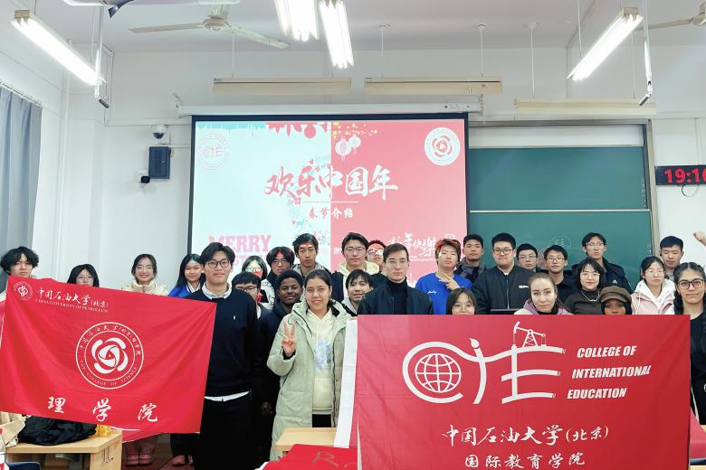12月7日,中国石油大学(北京)理学院与国际教育学院共同组织开展“纸艺剪韵,饺香传情”中外学生春节主题文化体验及国情教育活动,理学院数学类24-1班全体学生和来自土库曼斯坦等5个国家的11名来华留学生共同参加。