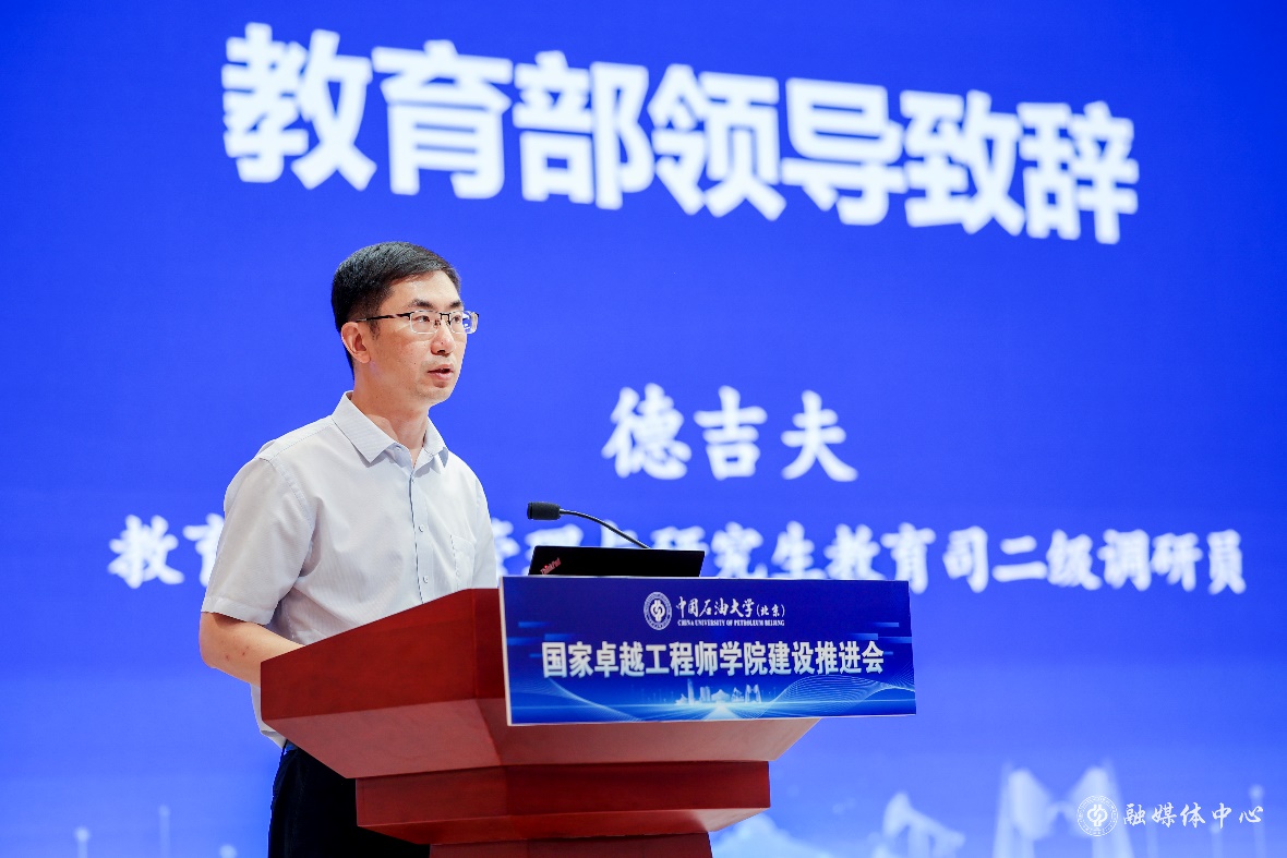 德吉夫肯定了中石大工程人才培养成效。他强调,要聚焦服务国家战略,瞄准关键领域和核心技术,构建有组织联合培养工程硕博士的新范式;要深化校企产教融合,夯实协同育人机制,落细落实人才培养工作;要加大资源投入力度,实现人才培养和工程实践深度融合,建好建强国家卓越工程师学院。他表示,教育部将一如既往支持中石大的建设和发展,推动学校加快建设能源领域特色鲜明的世界一流研究型大学,为建设教育强国、科技强国、人才强国作出更大贡献。
