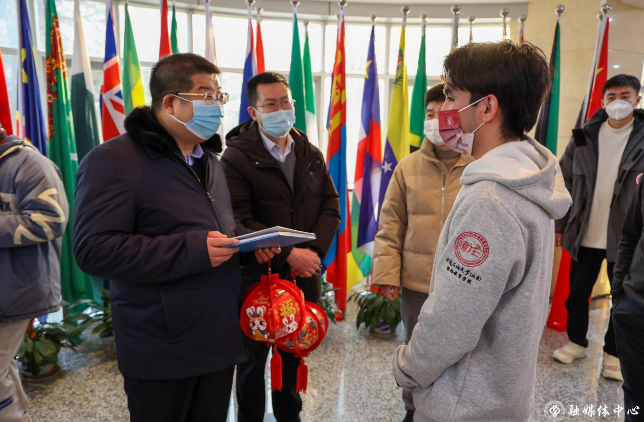 在国际教育学院,李健一行现场参与了留学生民俗体验活动,观摩了留学生们撰写中国春联、制作手工灯笼等活动。来自土库曼斯坦的留学生安国明,作为冬奥志愿者代表向团市委一行赠送了“中石大冬奥画册”。李健表示,共青团是所有青年的朋友,希望大家在中国学习生活期间遇到困难能够想到身边的共青团,同时以春节等传统节日为契机感受中国文化,回到自己的国家后传播中国文化,共同推进构建人类命运共同体。