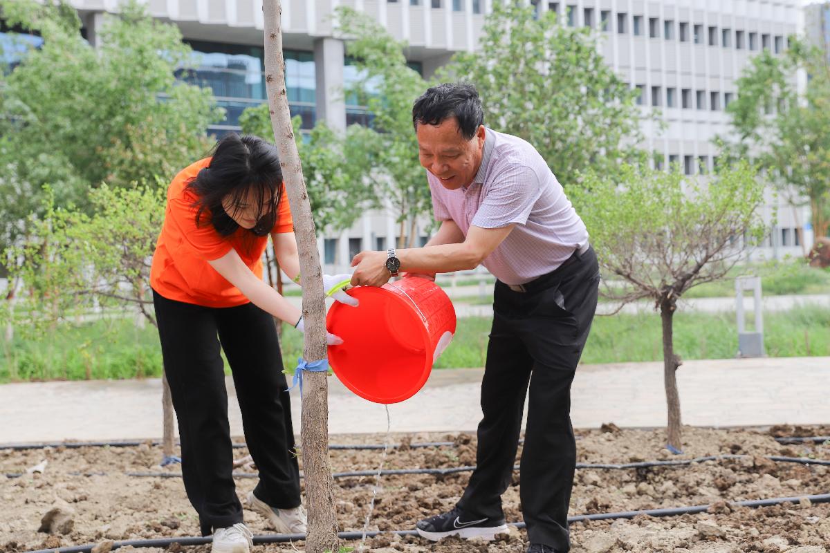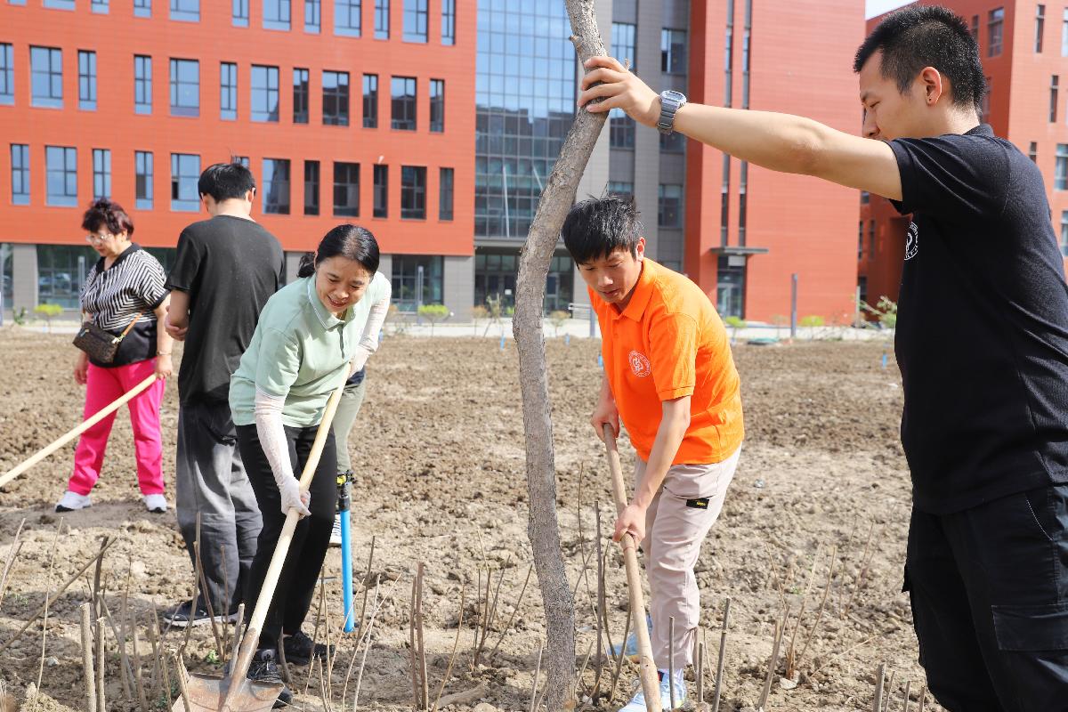 活动伊始,在工作人员的精心引导下,师生们两两结对,彼此默契配合。有的负责稳稳扶住树苗,有的则专注地培土夯实;有的提起水桶,有的则小心翼翼地浇灌着每一棵树苗。整个现场秩序井然,洋溢着和谐融洽的氛围。130余棵小树苗稳稳扎根在土地上,为校园增添了一抹生机勃勃的新绿。