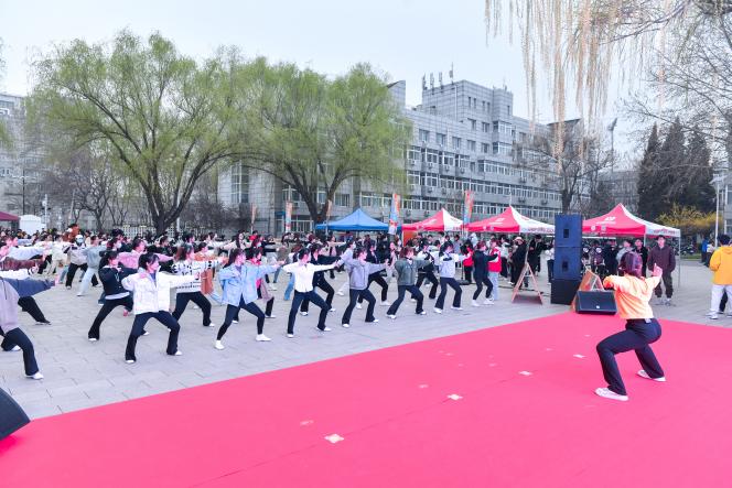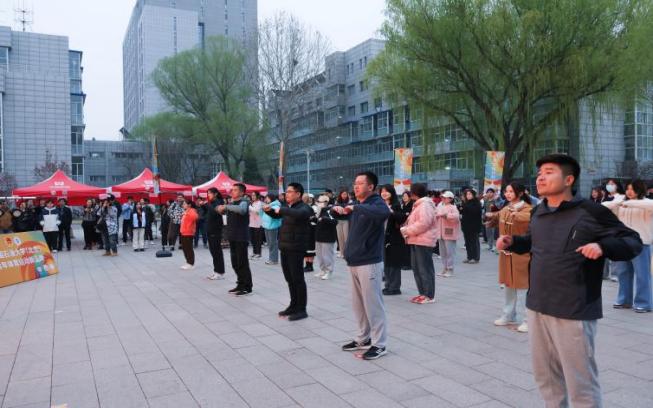 为了增加活动参与度,此次大赛还增加了养生八段锦体验和广场舞环节。现场师生共同学习养生八段锦,随着动感的音乐欢快舞蹈。