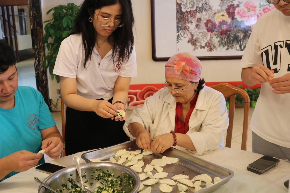 实践团带领哈萨克斯坦、俄罗斯、厄瓜多尔和阿塞拜疆的四国来华学生游览天坛等名胜古迹,体验武术、剪纸和包饺子等传统文化活动,深化国际青年对中国形象的理解、增进各国青年友情。