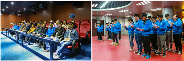 活动中,全体人员在北京化工大学南口校区听取了学校介绍并参观了图书馆、体育馆等处。随后,大家来到石大参观校园,开展了“定格光影,礼赞五四”活动,随手拍摄带有党徽的美景,以美图礼赞“五四”;参与了由中国青年报社、共青团中央网络影视中心、湖南广播电视台发起的“我宣誓你接力”活动,在青年园前,面向党旗庄严宣誓,并在蓝海4D影院观看了4D影片,了解石油文化,弘扬石油精神。地球物理学院勘查18-4团支部表演了舞蹈与朗诵,诠释了青春的激情和青年的担当。