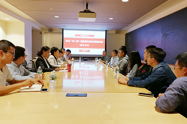 山红红一行看望了来自哈佛大学、耶鲁大学、麻省理工学院及斯伦贝谢-道尔研究中心的20多名石大海外校友,召开了中国石油大学推进“双一流”建设海外校友专题座谈会,与校友们亲切座谈,向校友们介绍了学校人才政策,欢迎校友们学成归国、常回母校看看。会上,“中国石油大学美东校友会”成立,校友们纷纷表达对母校培养的感谢之情,并纷纷对母校建校六十五周年表示祝贺,为母校“双一流”建设献计献策。