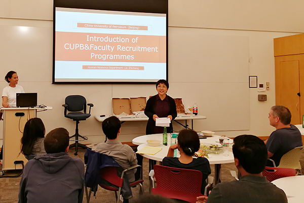 山红红向哈佛大学100余名师生代表宣讲了中国石油大学教学科研情况及高层次人才政策,并向哈佛大学及波士顿地区高层次人才发出诚挚邀请,热情欢迎他们到中国石油大学访问交流和工作,哈佛大学师生代表反响热烈。