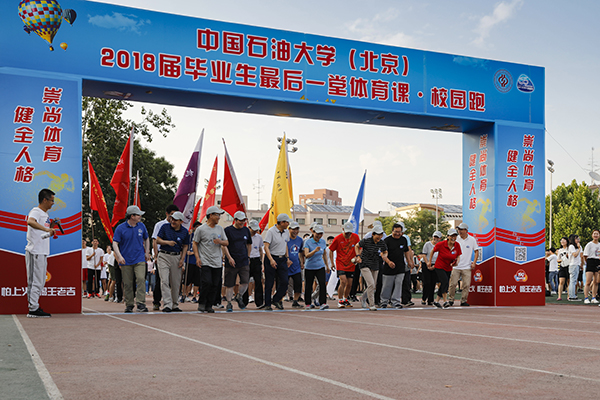 为营造参与体育、享受体育的校园文化氛围,倡导毕业生文明离校,祝福毕业生带着母校的期盼走向人生新的征程,6月14日,石大体育运动委员会、体育与人文艺术学院、学生工作处共同举办了中国石油大学2018届毕业生最后一堂体育课——校园跑活动,党委书记山红红,副校长董朝霞,相关职能部门、学院(研究院)负责人,以及2500多名2018届毕业生参加活动。