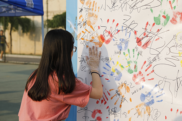 活动期间,同学们在毕业纪念墙上留下名字和手印,欣赏了石大拉丁舞协会、啦啦操协会等带来的精彩节目,体会了运动的乐趣,感受到了来自母校的深深祝愿和期盼。