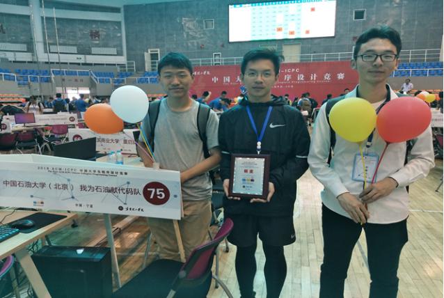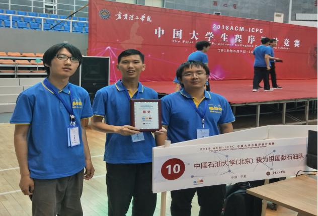 近日,2018年ACM-ICPC中国大学生程序设计竞赛在宁夏理工学院举行。石大地球物理与信息工程学院2016级本科生吕博枫、冯云豪、李昊元组成的“我为祖国献石油”队与2017级本科生许思睿、连浩丞、高宇翔组成的“我为石油献代码”队分别获得大赛银牌和铜牌,指导教师为地球物理与信息工程学院计算机系范江波。