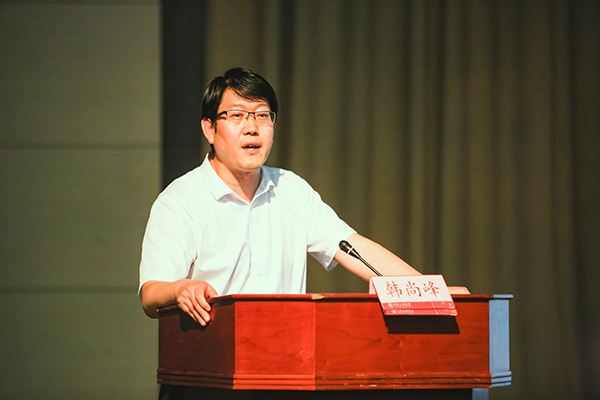 韩尚峰从理论维度、历史维度、现实维度和青年成长维度深入解读了习近平总书记重要讲话精神的时代背景和重要意义,从中国青年运动的时代主题、青年的认识论、青年的成才观以及“青年工作”观四个方面阐释了习近平总书记新时代青年观的理论体系和主要内容,结合“求真”、“力行”的科学精神与丰富内涵,回答了青年学生追求什么样的“真”,在什么“行”上发力的问题,并通过丰富的案例,为青年学生践行“求真”“力行”指明了方向路径。他号召青年学生把“求真学问”和“做实干家”结合起来,努力在实现中国梦的历史进程中书写青春的时代篇章。
