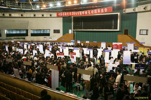 11月15日,我校在多功能厅举办了2009届毕业生通用专业大型招聘会,共有50家企业的102名代表来校招聘,其中北京地区企业40家。此外,还有中石油规划总院、中国石油西气东输管道公司、辽宁庆阳特种化工有限公司等石油石化企业来校招聘。