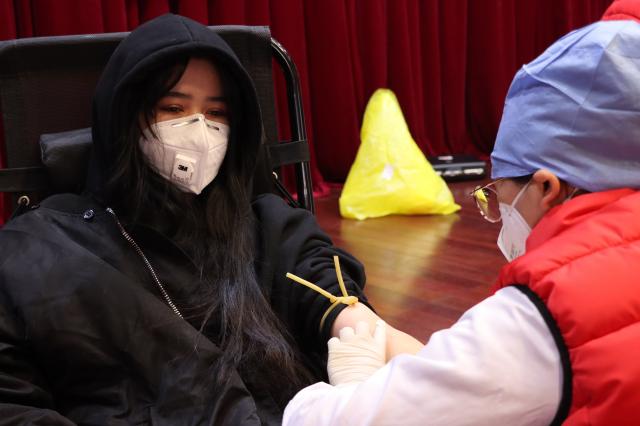2月8日上午8时,北京市红十字血液中心到学校进行了采血工作,经过严格的体温检测、消毒杀菌,确保无疫情威胁后,依次组织报名同学填表登记、测量血压、抽血化验、进行采血。前期报名的14名同学中符合条件的8名在校学生进行了无偿献血,另有5名在京不在校的同学也参与了社区献血。