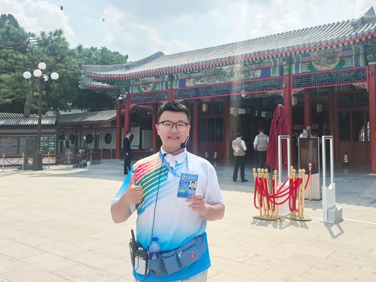 志愿者代表李茂粟表示,2019年,在长安街上汇入国庆70周年群众游行的洪流,在“艰苦奋斗”方阵中用脚步丈量祖国的辉煌变迁;2021年,在鸟巢与合唱团唱响《没有共产党就没有新中国》,在歌声里见证百年大党的风华正茂;2022年,在延庆冬奥村与外国友人共绘冰墩墩,用热忱与坚守为世界展现中国的活力与包容。今天,再一次站在天安门广场,当激昂的旋律在广场回荡,历史的厚重与当下的荣光在心中交织,震撼与激动难以言表。四次参与,四次蜕变成长;四份经历,四重信念担当。镌刻着不屈与担当的抗战精神从未远去,必将在我们一代又一代青年的接续奋斗中薪火永续、光耀千秋!