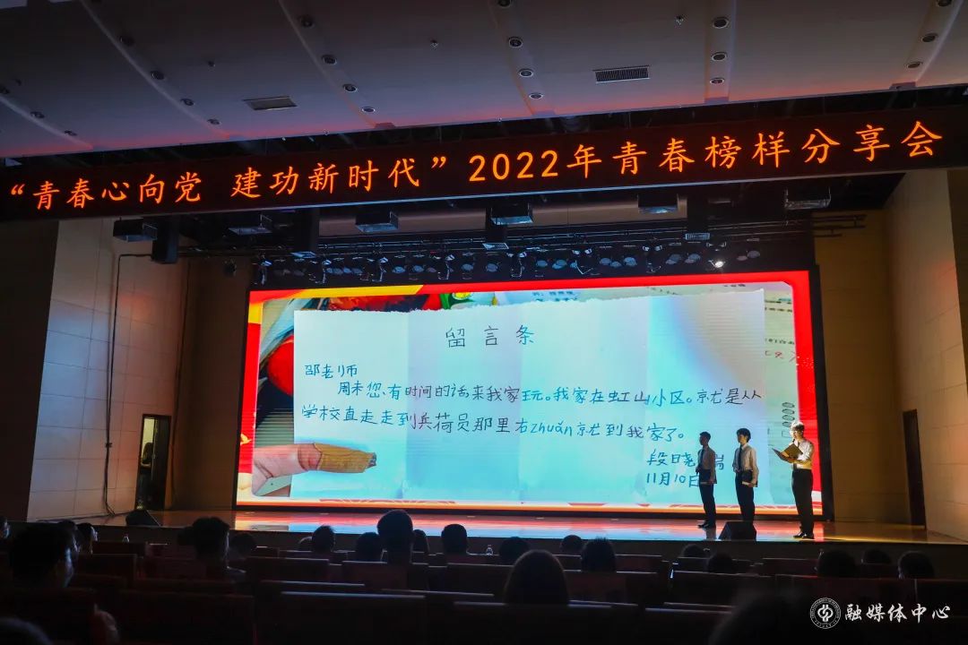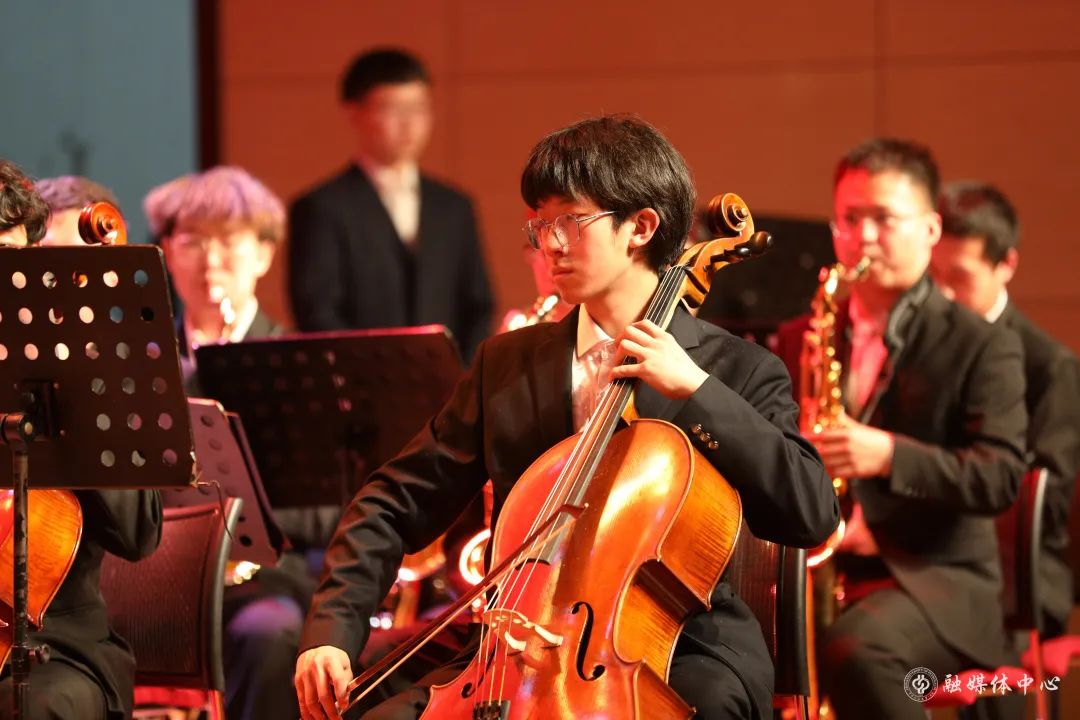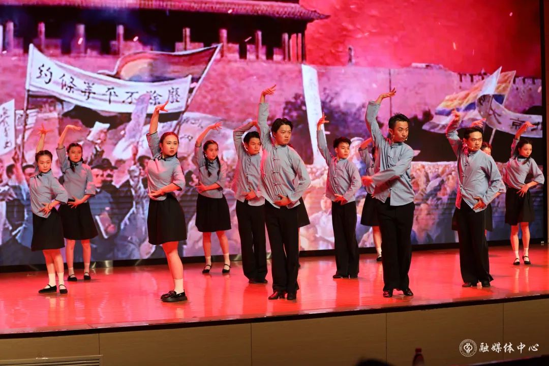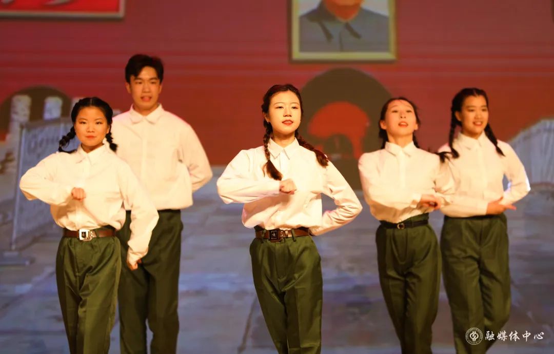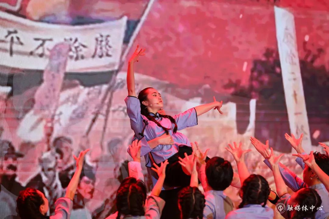 激昂的管弦乐合奏之后,来自各学院的青年师生以故事讲述、情景再现、音乐舞蹈短剧等形式,分享了青春奋斗的故事。