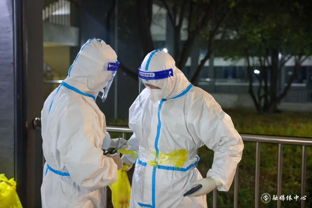 快速开展全员核酸,分片区设点检测,封控区内上门采样,师生依序听从指挥,医务人员不遑暇食。