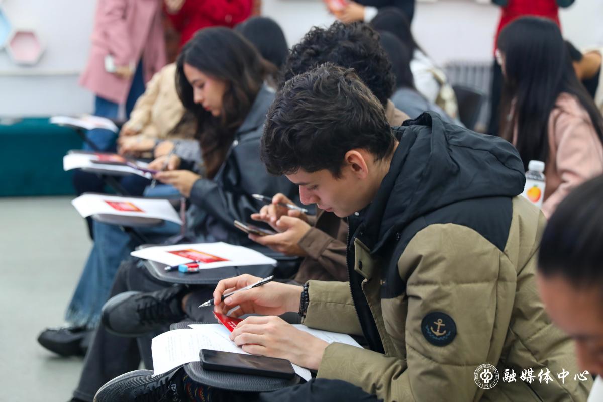 在“话感想”环节,3位学生代表分享了自己在阅读《论语》过程中的所学、所悟、所思。厄瓜多尔孔子学院学生代表保罗(Paúl Alfredo Villalva Sánchez),从学习生涯、教学感悟和未来设想三方面分享了阅读《论语》过程中的感悟,讲述了自己通过不懈努力练习汉语发音、成功获得中国留学的奖学金、结交志同道合朋友的故事,阐释了自己在学习过程中体会到的“学而时习之”和“有朋自远方来”的乐趣,表示自己身为一名本土汉语教师,将继续践行孔子提出的“有教无类”“游于艺”等教育理念,探索更加适合厄瓜多尔学生学习汉语的教学方法,给学生带来更生动的汉语教学课堂。国际教育学院埃塞俄比亚籍2023级汉语国际教育专业硕士研究生王美西(Wondafrash Mihret Berhanu)分享了她在中国留学期间对中华传统文化和儒家思想的深刻体验,讲述了《论语》中“仁”“礼”等思想内涵对她个人成长和价值观的积极影响,表达了作为来华留学生,她愿意肩负传播中华文化、促进国际文化交流的责任和使命,期待在未来能够更好地讲述中国故事,让世界了解一个更真实、立体、全面的中国。外国语学院2024级国际中文教育专业研究生谭洋从个人成长、道德修养、社会伦理等多个维度分享了《论语》的广泛影响,分析了《论语》中“己所不欲,勿施于人”等思想在塑造个人品德、促进社会和谐方面的重要性。呼吁师生多阅读《论语》,发掘其宝贵的思想价值,让这部古典著作在现代社会继续发挥时代作用。