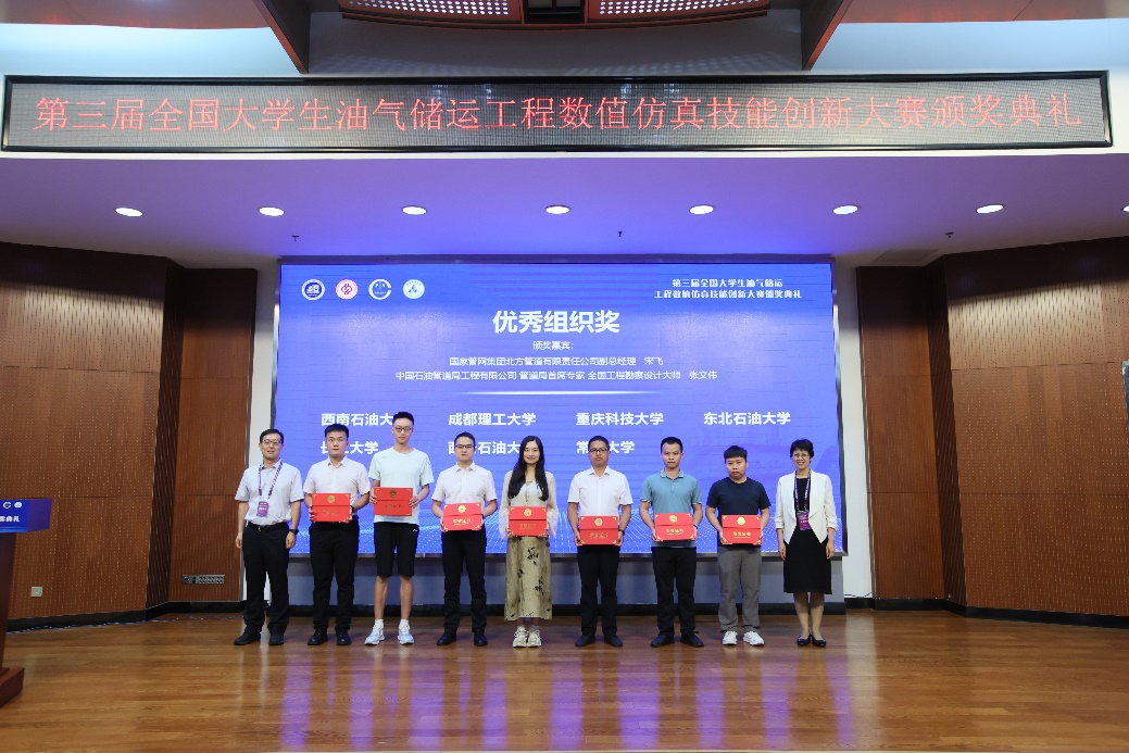 中石大副校长张广清,国家能源局石油与天然气司副司长韩玉柱,国家管网集团总经理助理丁建林,国家管网集团科学技术研究总院院长张对红,中油国际管道公司副总经理张鹏,国家管网集团储运技术发展有限公司副总经理付立武,国家管网集团北方管道有限责任公司副总经理宋飞,国家管网集团工程技术创新公司副总经理冷绪林,中国石油管道局工程有限公司首席专家张文伟,北京云道智造公司、中石化工程建设公司、中海油研究总院、中国仿真学会相关代表以及参赛高校师生出席大赛颁奖大会。