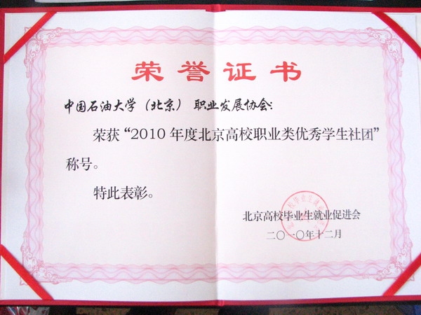 - 05 2011-01石大SPE学生分会荣获SPE总部“月优秀分会”荣誉称号