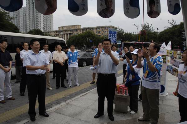23 2008-08张来斌校长等校领导看望慰问在奥运一线服务的石大志愿者