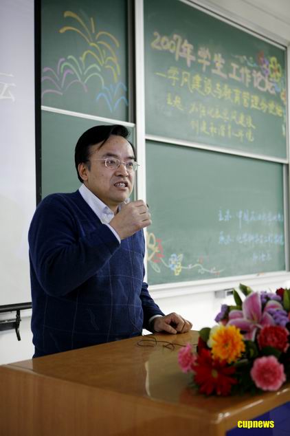 2007年12月14日,我校学生工作论坛学风建设与教育管理分论坛在三教206教室成功举办。该论坛由化学科学与工程学院和外语系共同承办,论坛主题是“加强优良学风建设,创建和谐育人环境”。张来斌校长、徐春明副校长出席,研究生院、人事处、学工处、就业指导中心、团委、化工学院和外语系等单位领导参加了此次论坛。