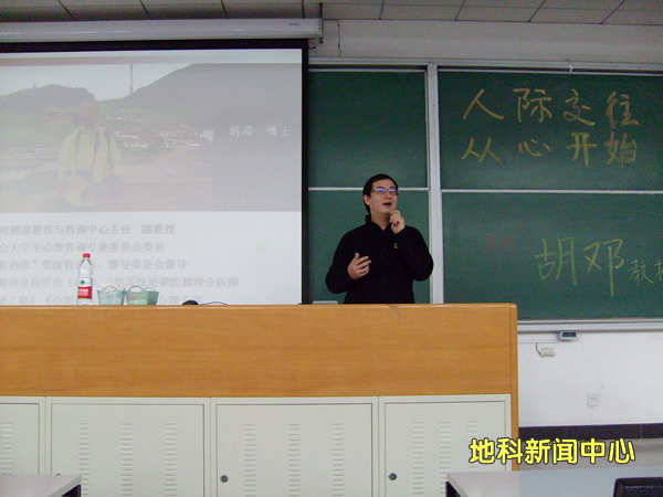 12月20日晚,由地球科学学院学生会生活部在三教楼举行了主题为“人际交往,从心开始”的 大型讲座,邀请到中国人民大学知名的心理学老师胡邓主讲。