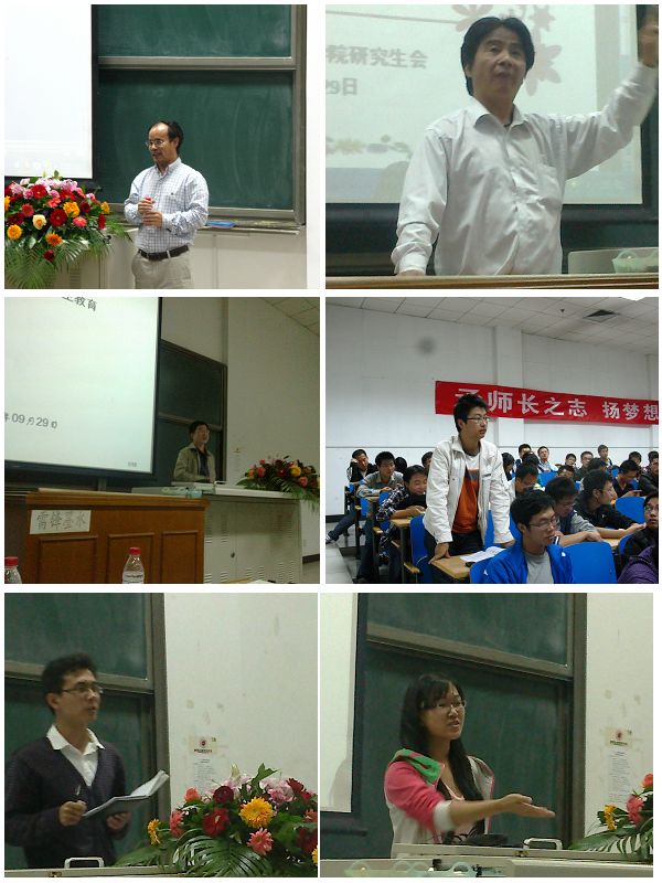 学生代表博士生王英及研究生孙鹏超也分别发言,告诉同学们如何充分利用学校的各项资源学习,还传授了一些面试技巧。会上,同学们踊跃提问并得到了耐心的解答。