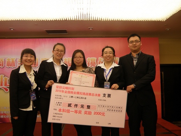 本届比赛自2011年11月开赛,历经五个月的角逐,工商管理学院教师张海霞和冯晓丽指导的由党沛、张琳、辛向玲、孙毓四名本科生组成的参赛团队“Spike 狼牙”队一路过关斩将,在总决赛的模拟比赛和现场商业演示中,代表队发挥出色,获得了资深名校评委和企业高管的一直好评,最终位居本科组亚军,获得全国一等奖的好成绩,并获邀于今年5月份去北欧参赛和交流访问。