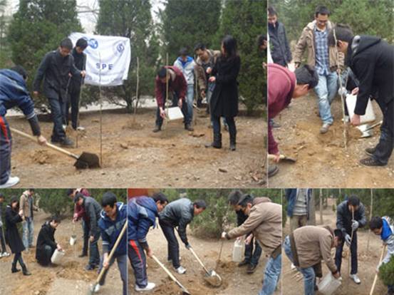 3月17日上午,石大SPE学生分会组织学生在北校区小树林组织春季植树活动,进一步提高大学生的绿化意识。在活动中,各成员表现积极、互相帮助,成功栽下16棵树苗,在校园里播下了绿色的希望。