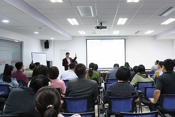 张宝生围绕智慧教书情感育人的主题,从高校教师精彩成长、讲好一门课、用“师范”精神成就教学人生三个方面为在场教师进行了讲解他认为成为一个好教师,不仅需要上好一门课,还需要高尚的师德师风,要以德施教以德立身才是对学生最生动、最具体、最深远的教育,对于在校教师,特别是新上岗教师,必须时刻铭记立德树人,为学生树立榜样。他提出了高校教师的具体“师范”,表示没有科研成果就难以成为名师,强调教师在用心教学的同时也要提升自我,达到立德树人的教学境界。