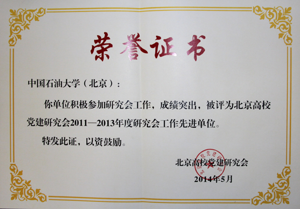 石大荣获北京高校党建研究会2011-2013年度研究会工作先进单位