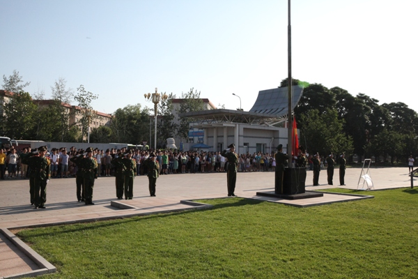 6月23日,中国石油大学2014届毕业生离开母校前最后一次升旗仪式在学校北门广场举行,各学院团委书记、毕业班辅导员以及全体毕业生参加了升旗仪式。