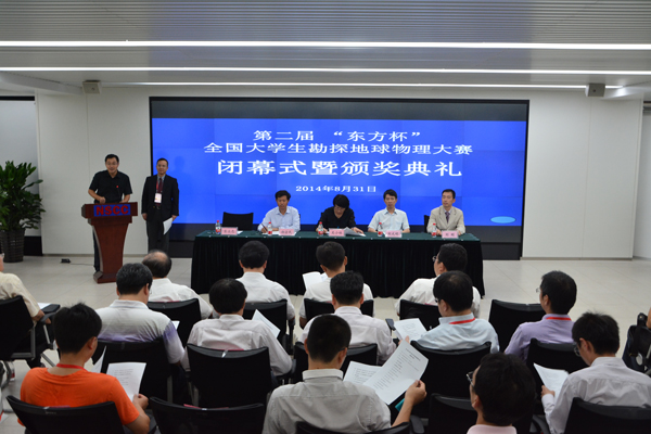 8月31日下午,由勘探地球物理学家学会(SEG)、中国石油学会石油物探专业委员会、中国石油东方地球物理公司和中国石油大学(北京)共同主办,中国石油大学(北京)、东方地球物理公司、SEG中国、国家超级计算天津中心承办的第二届“东方杯”全国大学生勘探地球物理大赛颁奖典礼在国家超级计算天津中心举行。中国石油大学(北京)副校长吴小林、东方地球物理公司总工程师郝会民、SEG中国首席代表刘刚、国家超级计算天津中心主任刘光明等专家学者以及参赛团队共90人参加了颁奖典礼。典礼由中国石油大学(北京)地球物理与信息工程学院院长肖立志主持。