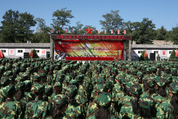 9月27日上午,中国石油大学2014级学生军训结训典礼在平北学生军训基地举行,校长张来斌,人民武装部和各学院的主要负责人以及平北军训基地和承训部队相关负责人出席了典礼。