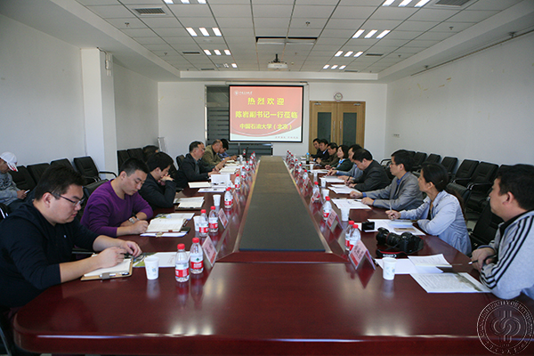 雷玉江对陈岩一行的到访表示欢迎,希望通过双方交流,进一步增进友谊,相互借鉴,共同推动两校学生工作再上新台阶。会上,雷玉江介绍了石大的历史沿革、基本情况、发展情况和学生工作、资助工作、就业工作、团委工作的基本情况。学生工作部门负责人详细介绍了学生工作质量保障体系、学生成长成才保障体系、学生综合素质教育体系和辅导员队伍建设的有关情况。