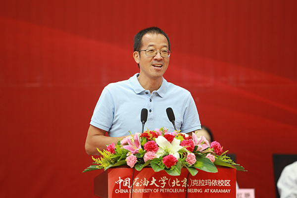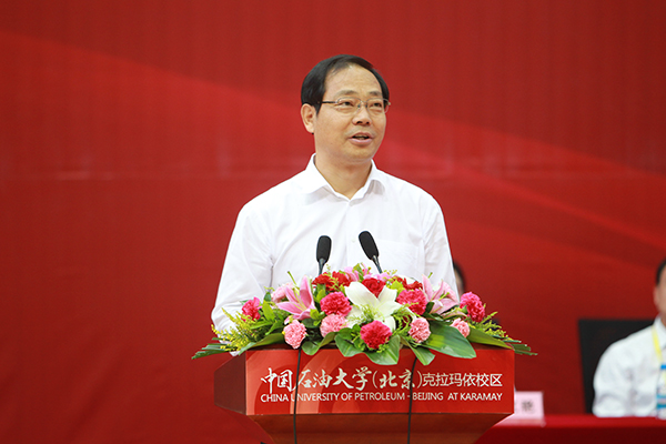 张来斌在典礼上发表讲话,对前来参加典礼的各位领导、各界嘉宾、各位家长表示衷心的感谢;对在校区起步阶段慷慨捐资、热心助学的企业表达深深谢意和敬意;对刚刚加入中国石油大学克拉玛依校区的461位新同学表示热烈祝贺和欢迎。他承诺,在克拉玛依办学既是学校的战略选择,更是一种责任和担当,相信在“一带一路”战略的引领下,在各方力量的支持和帮助下,学校一定能办出一个有特色、高水平、国际化的校区,一定能培养出高素质的优秀人才。