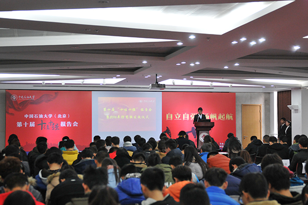 会上,三位“十佳十强”获奖者作了现场报告。他们从新生适应、学业进步、勤工助学等角度,与现场同学分享了他们在大学校园学习、生活的经验和感悟,把石油人的使命感、责任感与自强不息、追求卓越的精神传递给每一位新生。