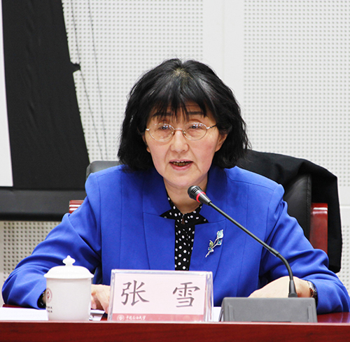 张雪在讲话中高度评价了中国石油大学(北京)近年来在党建和思想政治工作、人才培养、科学研究以及服务石油石化工业发展、服务北京市经济社会发展等方面做出的重要贡献,并代表市委教育工委、市教委对蒋庆哲同志在担任中国石油大学(北京)党委书记期间对学校发展的积极贡献表示感谢。