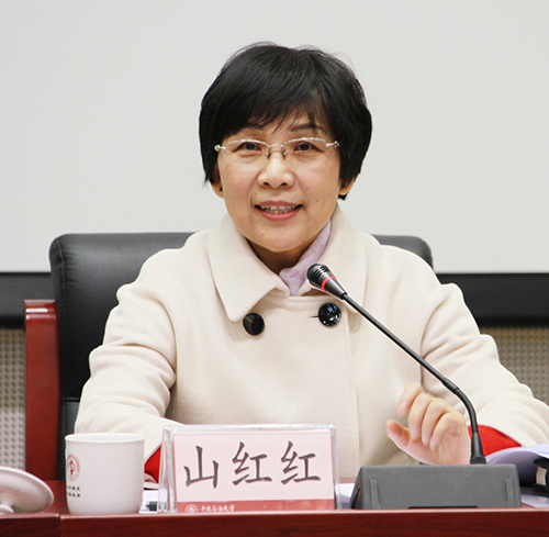 山红红作了题为《发展无止境 奋斗不歇停》的表态发言,表示将时刻牢记使命,以自己最大的努力,高度负责地担承责任,不辜负组织的信任、领导的重托和全校师生的期望,与张来斌校长和班子其他成员一道,紧紧依靠和团结带领全校师生员工,充分发挥专家学者的作用,求真务实、开拓奋进,共同把学校的各项工作做好,推动学校事业发展不断迈向新的高度。