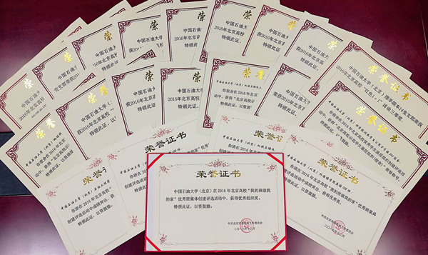 3月1日,中共北京市委教育工作委员会召开2017年北京高校宣传教育工作会议,表彰2016年高校宣传教育工作先进单位和工作成果。中国石油大学首次获得北京高校“我的班级我的家”优秀班集体创建活动优秀组织奖。此外,18个班级、党支部、宿舍等基层组织在北京高校优秀学生基层组织创建展示活动中获奖,1项成果获得“丹柯杯”优秀研究成果二等奖。